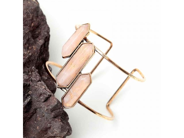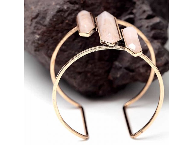 Ce remarquable bracelet manchette plaqué or est orné de trois perles roses. Portez-le tout seul pour plus d'impact.